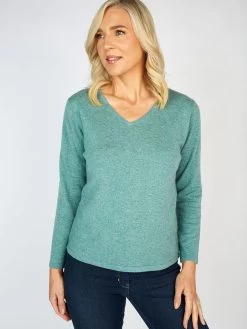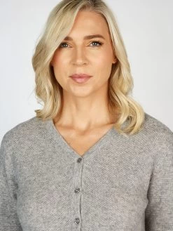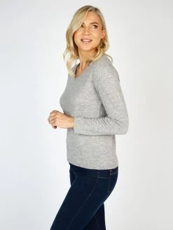 Extra Fine Merino Wool & Cashmere V Neck Sweater Silver Grey