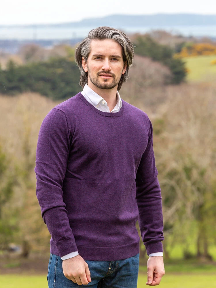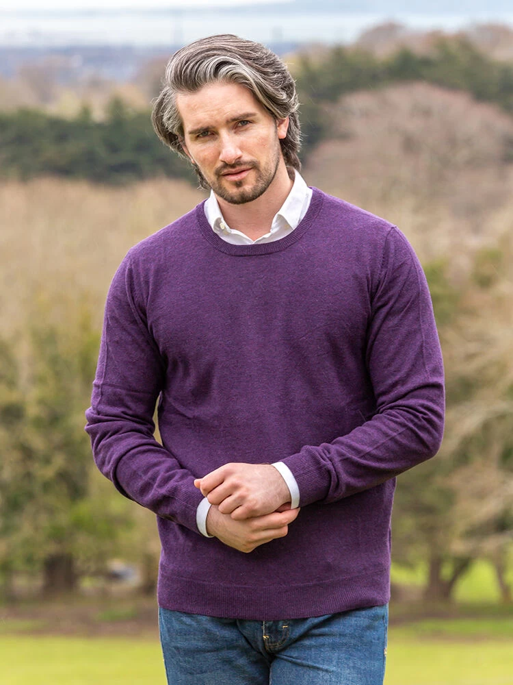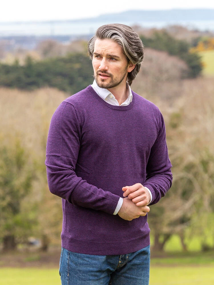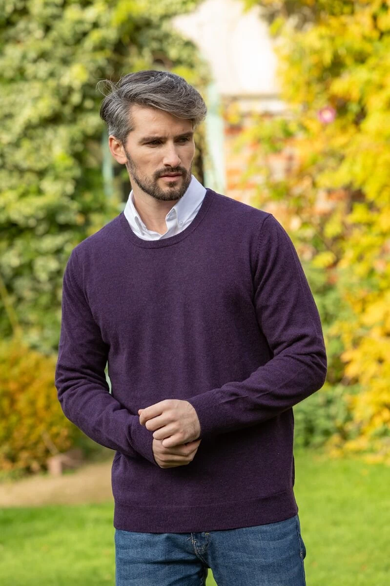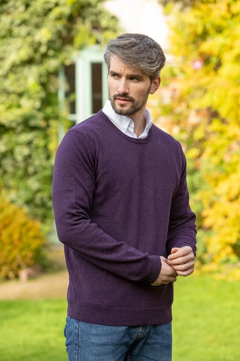 Get cozy with a comfortable sweater that wonât weigh you down with this 100% Lambswool Lightweight Crew Neck in the color purple wine.Â