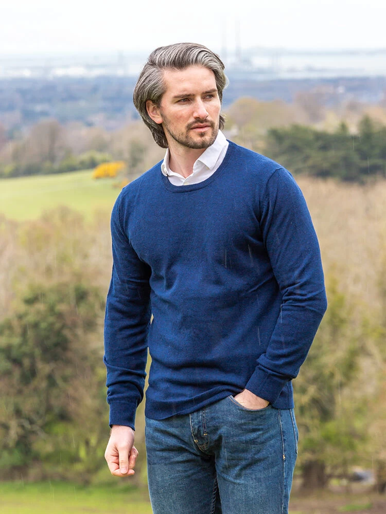 This mens lightweight crew neck is made of 100% lambswool. It is the perfect Summer sweater and looks great over your favourite Shirt. It is a fitted style so runs slightly small. The rich Navy colour is so elegant and sophisticated that it will go with anything in your wardrobe.