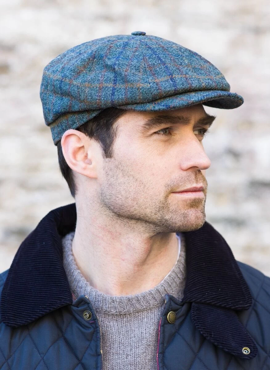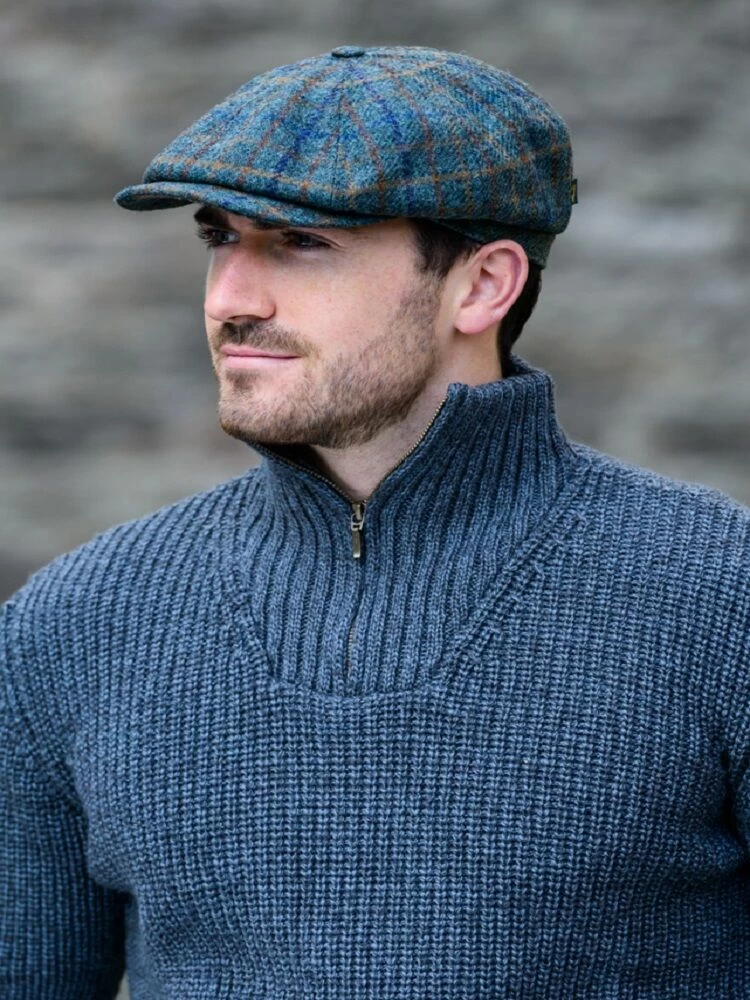 This stunning 8 piece pannel mens driving cap is made from 100% Irish tweed wool. The lining is made of 100% cotton on the inside so is perfect for the colder days.It is handwoven in Ireland and a must have for any man. It is stylish, elegant and sophisticated. Team with one of our wool and cashmere scarves to complete the look.