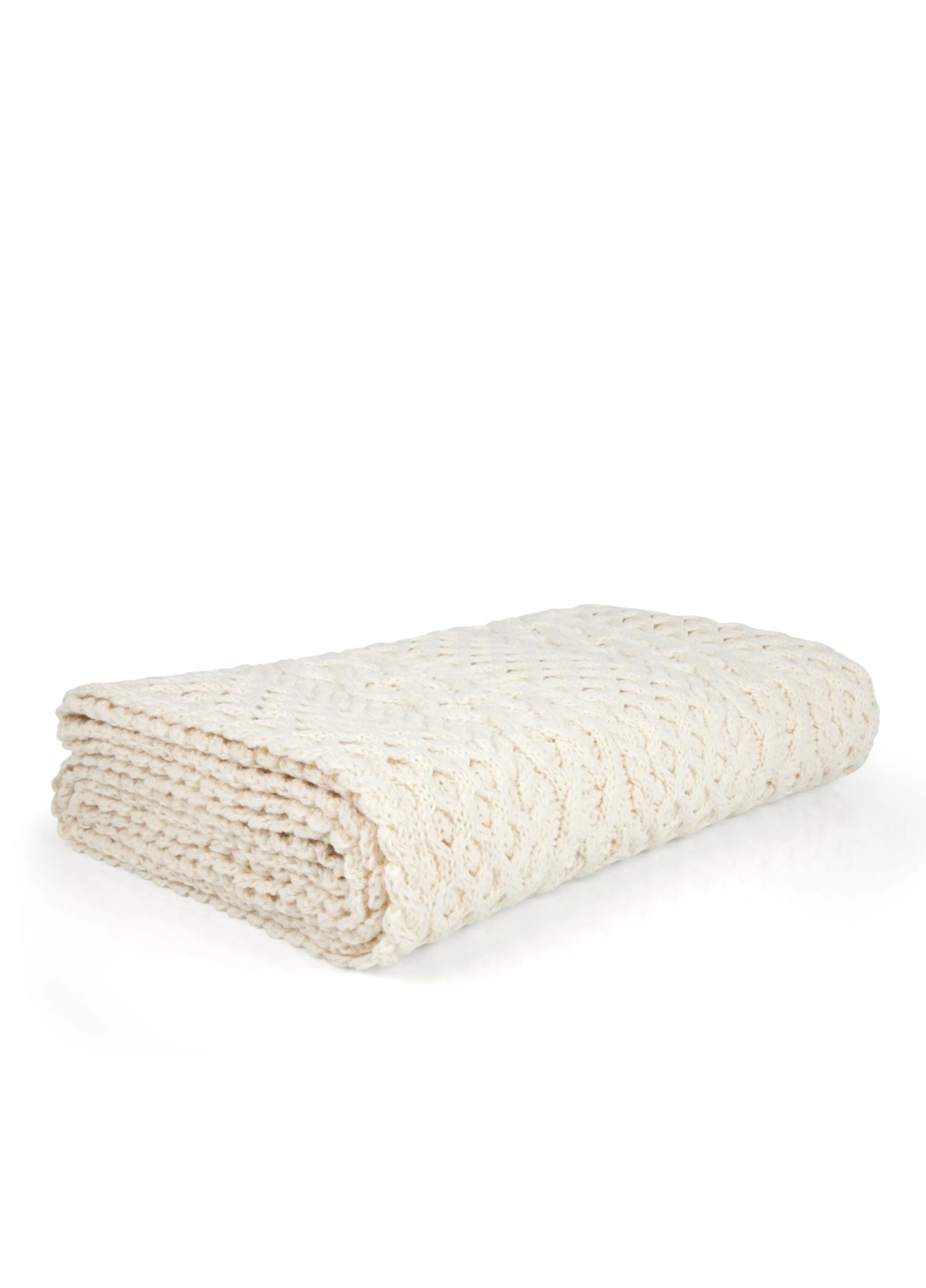 It features beautiful Irish stitches throughout the throw. We can see the Basket stitch, which represents the fishermans basket and the hope of many catches. It also features the cable stitch, which represents the fishermans rope- safety and good luck while out at sea. We can also see the honeycomb stitch, this means “work as the bee – for a fair reward”, the diamond stitch shows success, wealth and treasure. This Irish throw is perfect as a gift or as a treat to yourself.