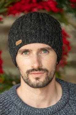 Aran Cable Pullon Hat in charcoal knitted in an Aran Cable pattern is a 100% Wool with Polyester fleece lining for extra warmth and comfort, ideal on a cold winters day. Soft to the touch and very warm and easy to wear.