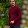 This trendy Irish Aran Cowl Neck sweater, available in natural, green and navy, is made in Ireland and is 100% Soft Merino Wool. True Aran sweater for the modern man, this cowl neck Irish sweater is a wonderful addition to any man’s wardrobe. Cosy yet practical, this jumper would definitely make the perfect gift for the man in your life. “V” neck shawl collar is the main feature of this Irish sweater – team it up with a shirt underneath or a polo neck for extra warmth!
