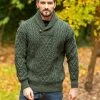 This trendy Aran shawl neck sweater, available in a selection of colours, is made in Ireland and is 100% Soft Merino Wool. A true Aran sweater for the modern man, this piece is a wonderful addition to any man’s wardrobe. Cosy yet practical, this jumper would definitely make the perfect gift for the man in your life. A “V” neck shawl collar (or cowl neck) is the main feature of this Irish fisherman’s sweater – team it up with a shirt underneath or a polo neck for extra warmth!