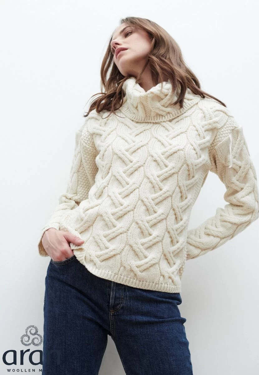 Main features of this Irish Aran Super Soft Cowl Neck Sweater