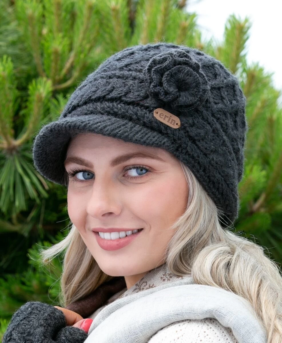 Made in Ireland this Knitted Peak Hat is made of 100% Wool with Polyester fleece lining for extra warmth and comfort.
