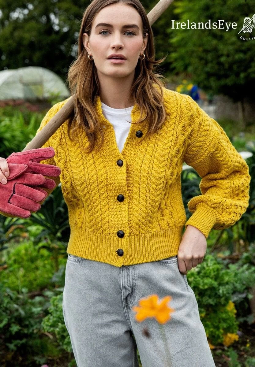 Made in Dublin Ireland, this stunning cropped aran cardigan is modern yet keeps its Irish heritage feel with cable knit stitching throughout.