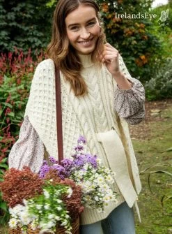 This stunning aran cape is made in Dublin of 100% Merino Wool. A garment that will never date this statement piece is slightly long and drapes so elegantly over your shoulders. The garment has a belt to cinch you in at the waist creating a flattering silhouette.