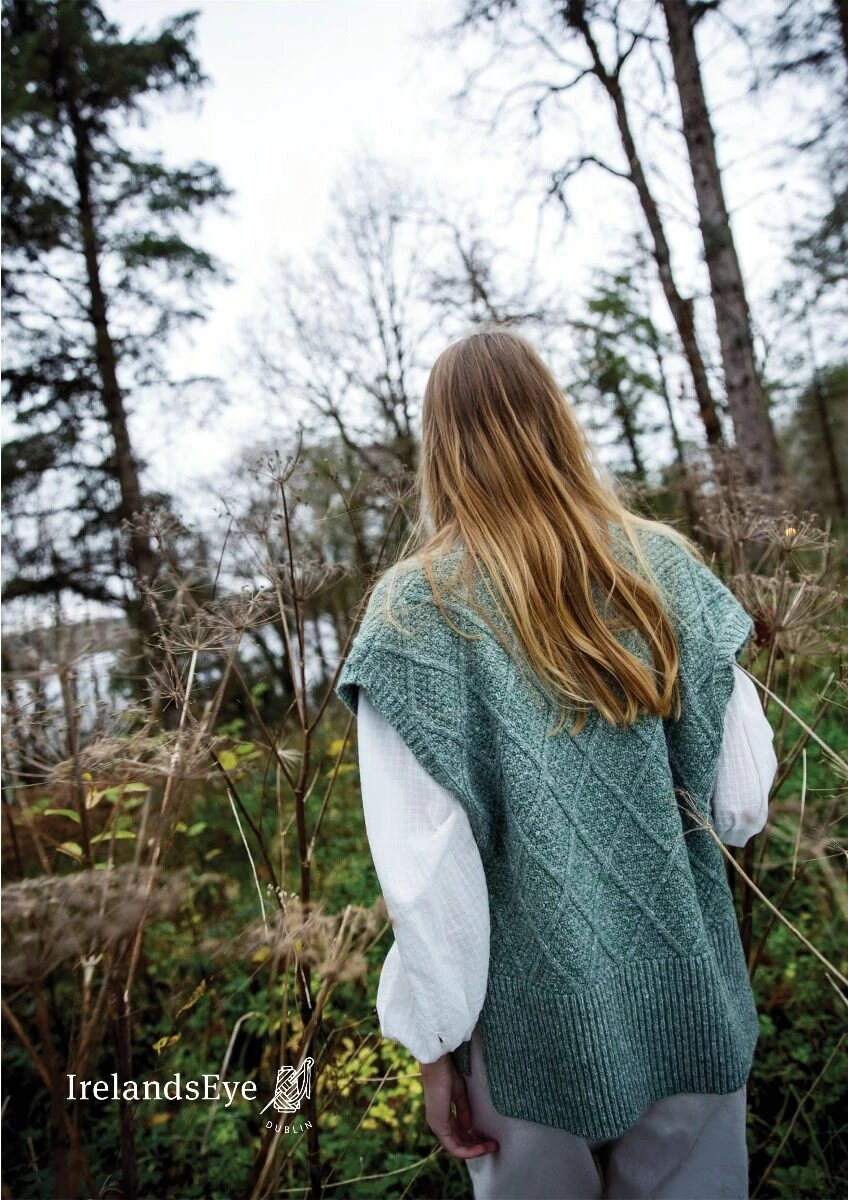 This ladies sleeveless cardigan is made in Dublin by fellow family business Irelands Eye Knitwear. It is made if the most luxurious yarn – a blend of the most amazing wools – 67% Merino wool, 23% cotton, 5% cashmere and 5% silk.