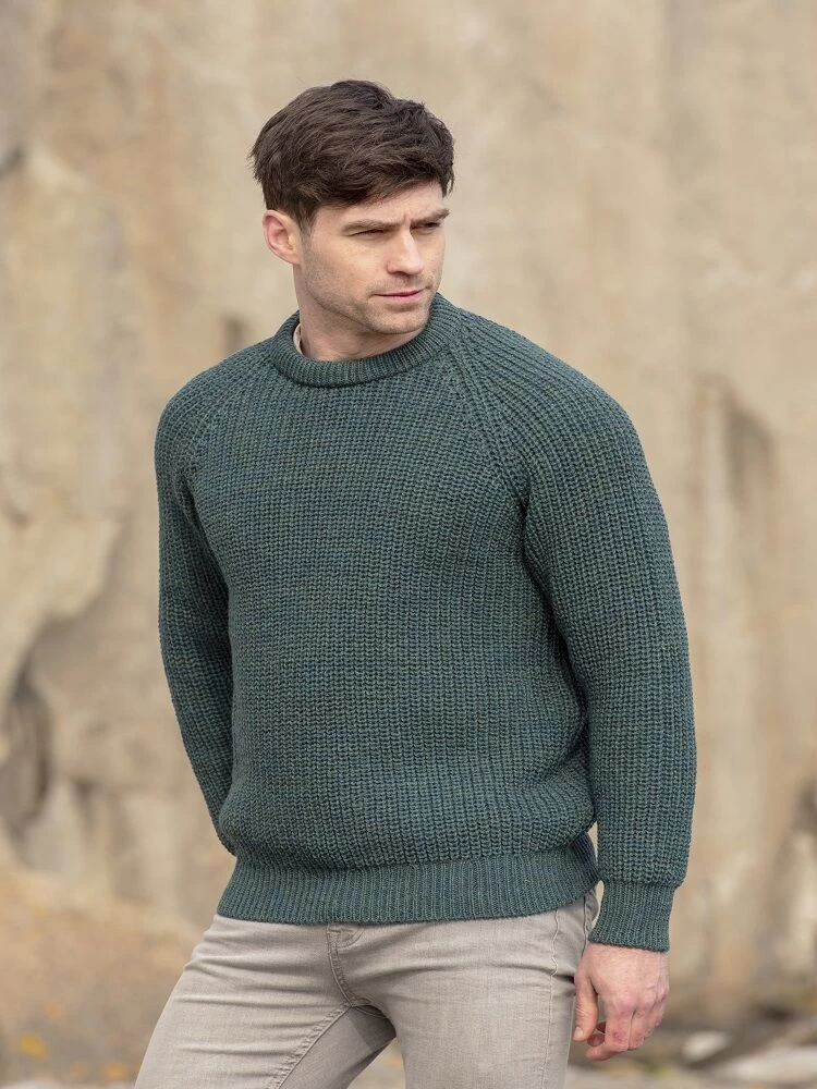 This mens traditional fisherman sweater is made of 100% pure new wool. The rib is knit using a large stithc pattern, making this sweater incredibly warm! It is a classic mens sweater that is perfect for any man seeking warmth and sophistication!