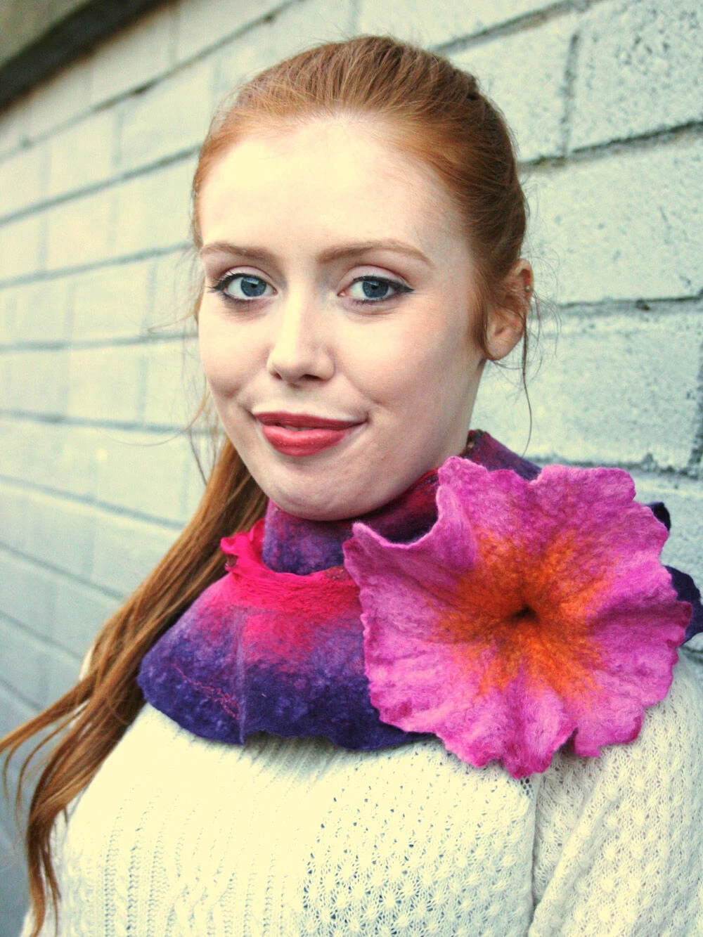 Handmade Felt Wool Flower Scarf