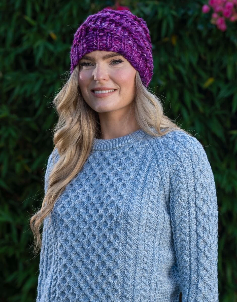 Handmade in Ireland by our talented store manager Anna, this beautiful super soft merino wool hat is a unique piece of Irish knitwear exclusive to the Sweater Shop. It also is machine washable!