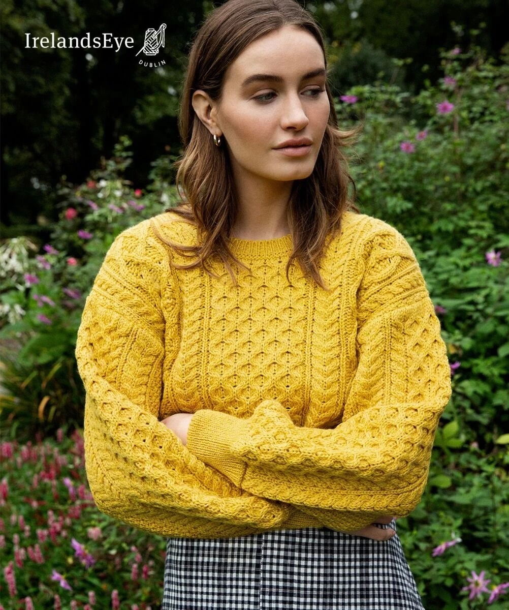 Made in Dublin, Ireland this stunning new cropped aran sweater is available in a collection of bright and vibrant colours.
