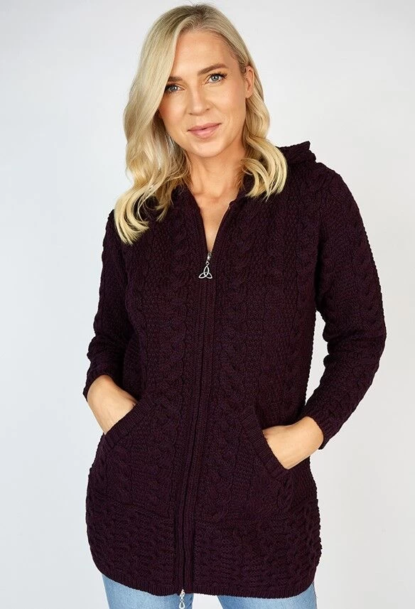Be the first to review “Irish Aran Hooded Coat Damson” Cancel reply