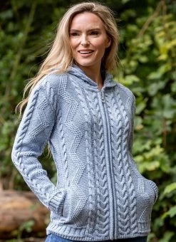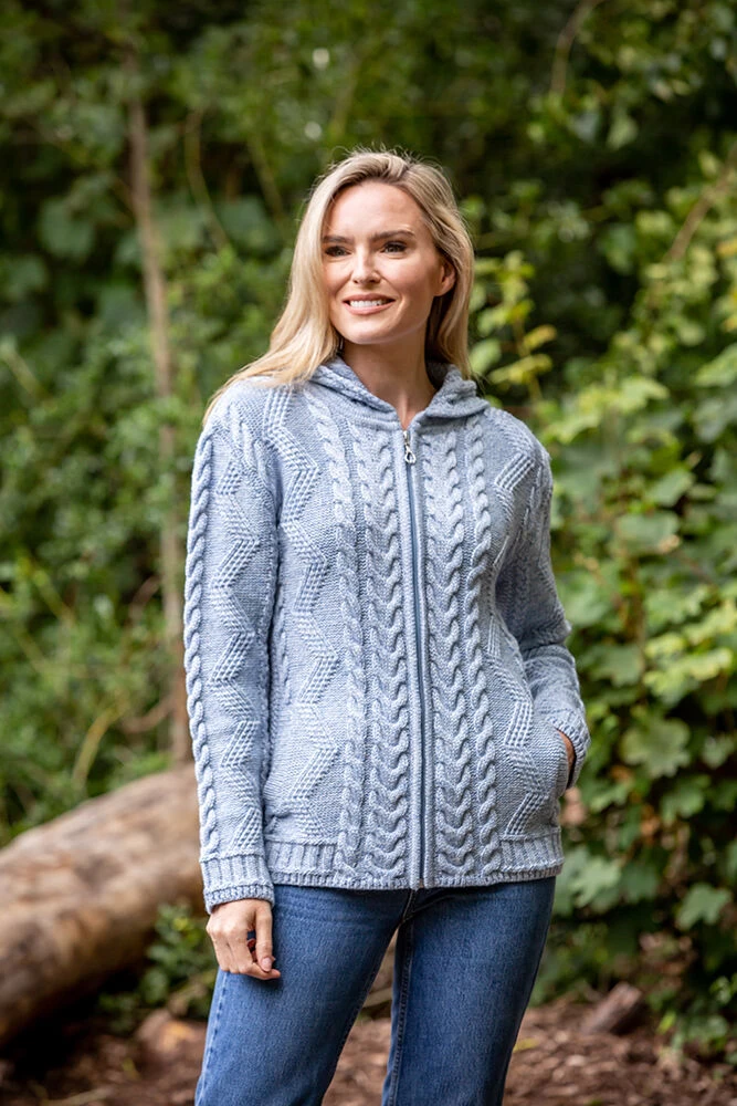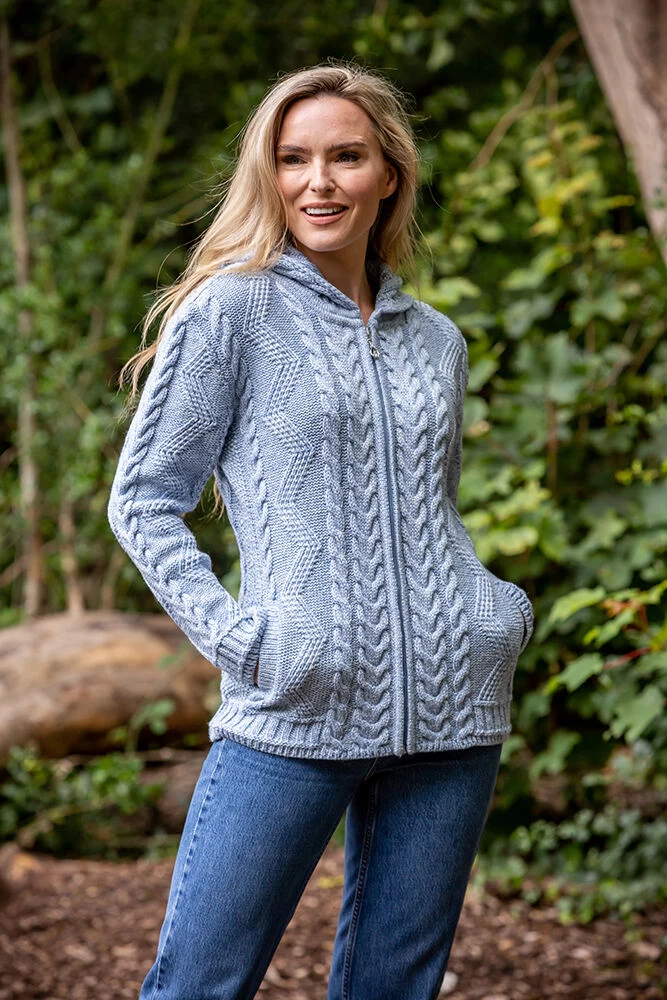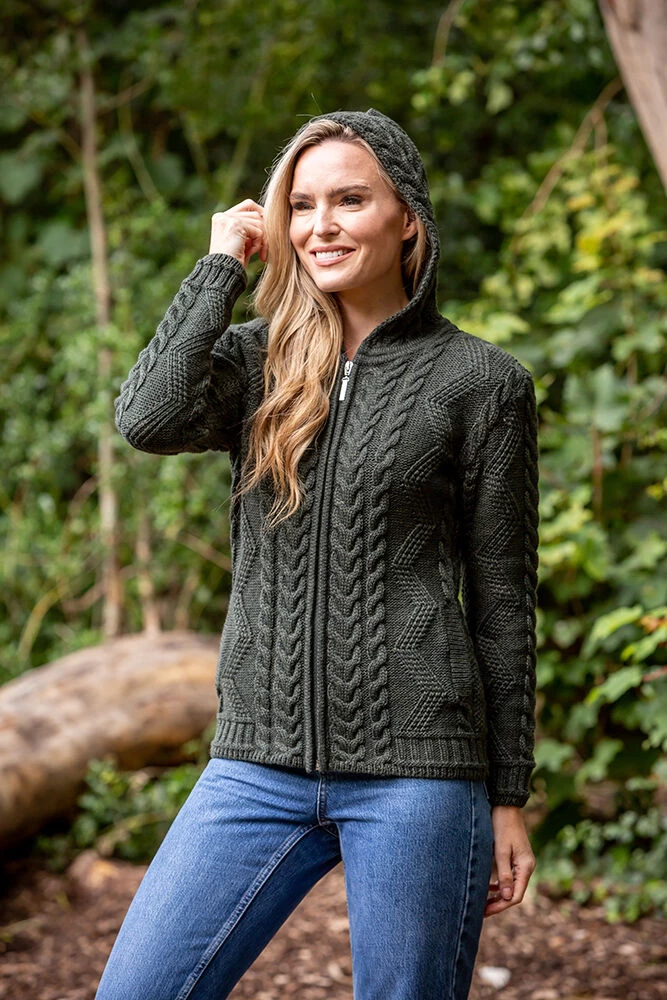 Ladies Aran Hooded Cardigan With Cladagh Zip