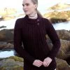 This Irish aran ladies sweater is made of 100% merino wool. It features the beautiful cable knit stitch down the front along with an array of other stunning Irish stitches. We adore this new raspberry colour,it is feminine, elegant and sophisticated. Perfect for wearing with our pink merino wool scarf.