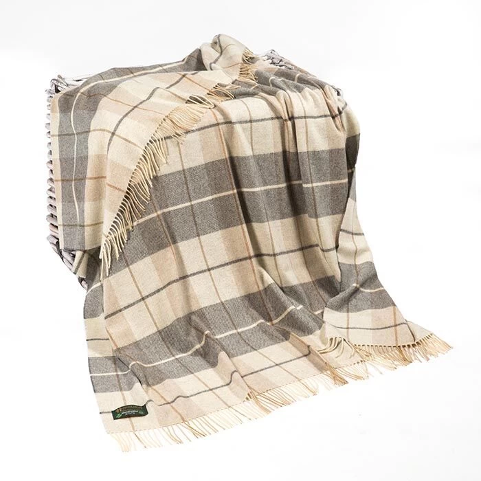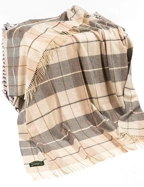 Lambswool Throw Beige Cream and Grey One size