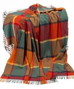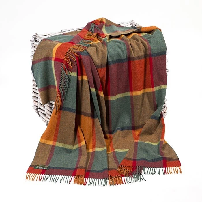 Lambswool Throw Terra Cotta Ochre & Teal One size