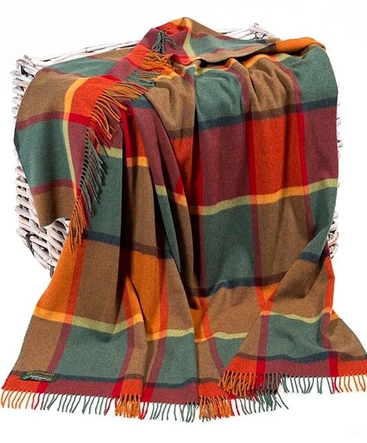 Lambswool Throw Terra Cotta Ochre & Teal Col: 639