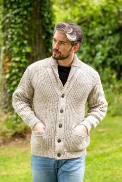 100% Merino wool Irish Aran Side Zip silver cardigan Made in Kildare in Ireland 100% Irish made