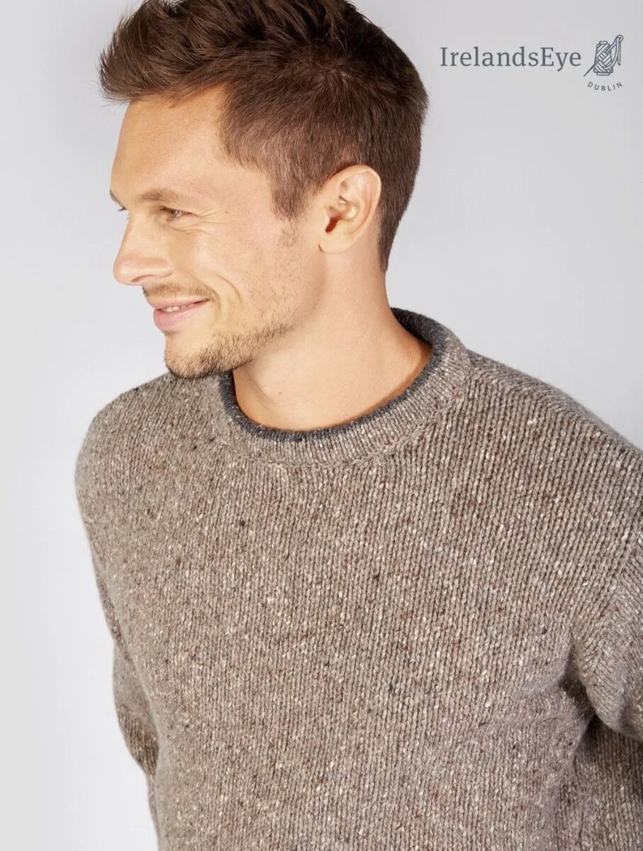 This mens rocky ground crew neck sweater is made of soft wool (95%) and cashmere (5%), making it a favourite among our male customers. It is made in Dublin by a fellow family business- Irelands Eye knitwear. It is soft, cosy, warm and extremely fashionable to wear.