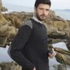 This men’s half zip ribbed sweater berry is a classic sweater that has come back into fashion. The army green compliments the sweater and brings out its beautiful stitching. We suggest wearing with one of our soft wool scarves and an irish cap to keep you toasty and stylish this Winter!