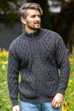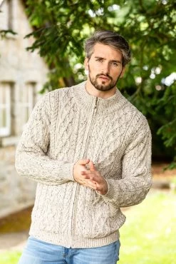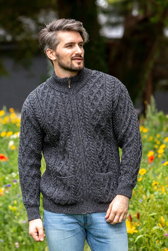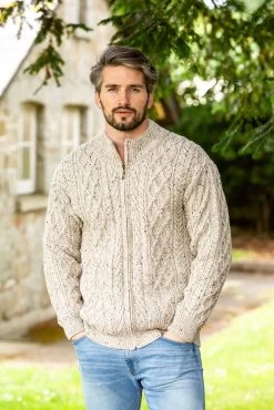 Men’s Merino Wool Full Zip Aran Cardigan | The Sweater Shop