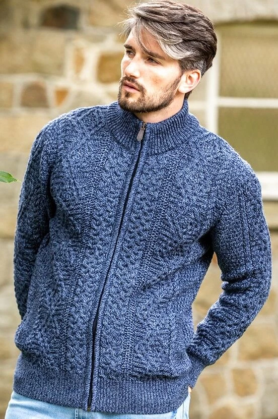 True Aran sweater for the modern man, this full zip Irish sweater is a wonderful addition to any man’s wardrobe. Cosy yet practical, this jumper would definitely make the perfect gift for the man in your life. Team it up with a shirt underneath or a polo neck for extra warmth!