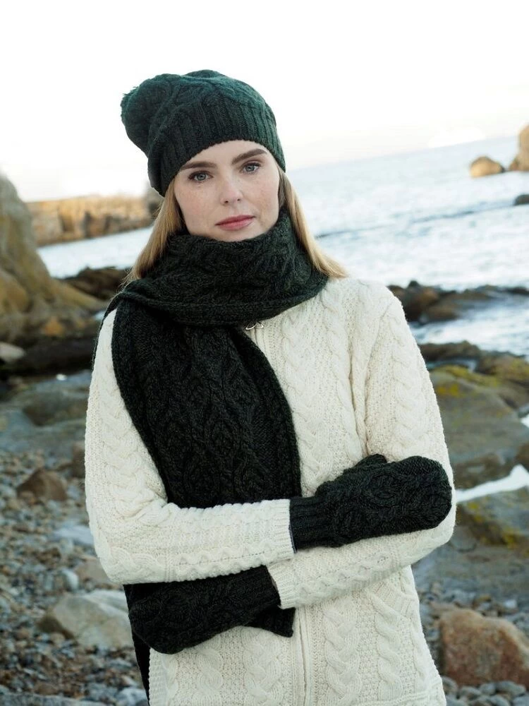This ladies Irish Aran Cable Knit scarf is made of 100% Super soft Merino Wool. It is so warm, cosy and luxurious you will never want to take it off. It is designed to keep you feeling toasty on the coldest of days. An amazing gift for the lady in your life. One size fits all.