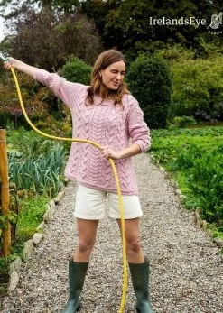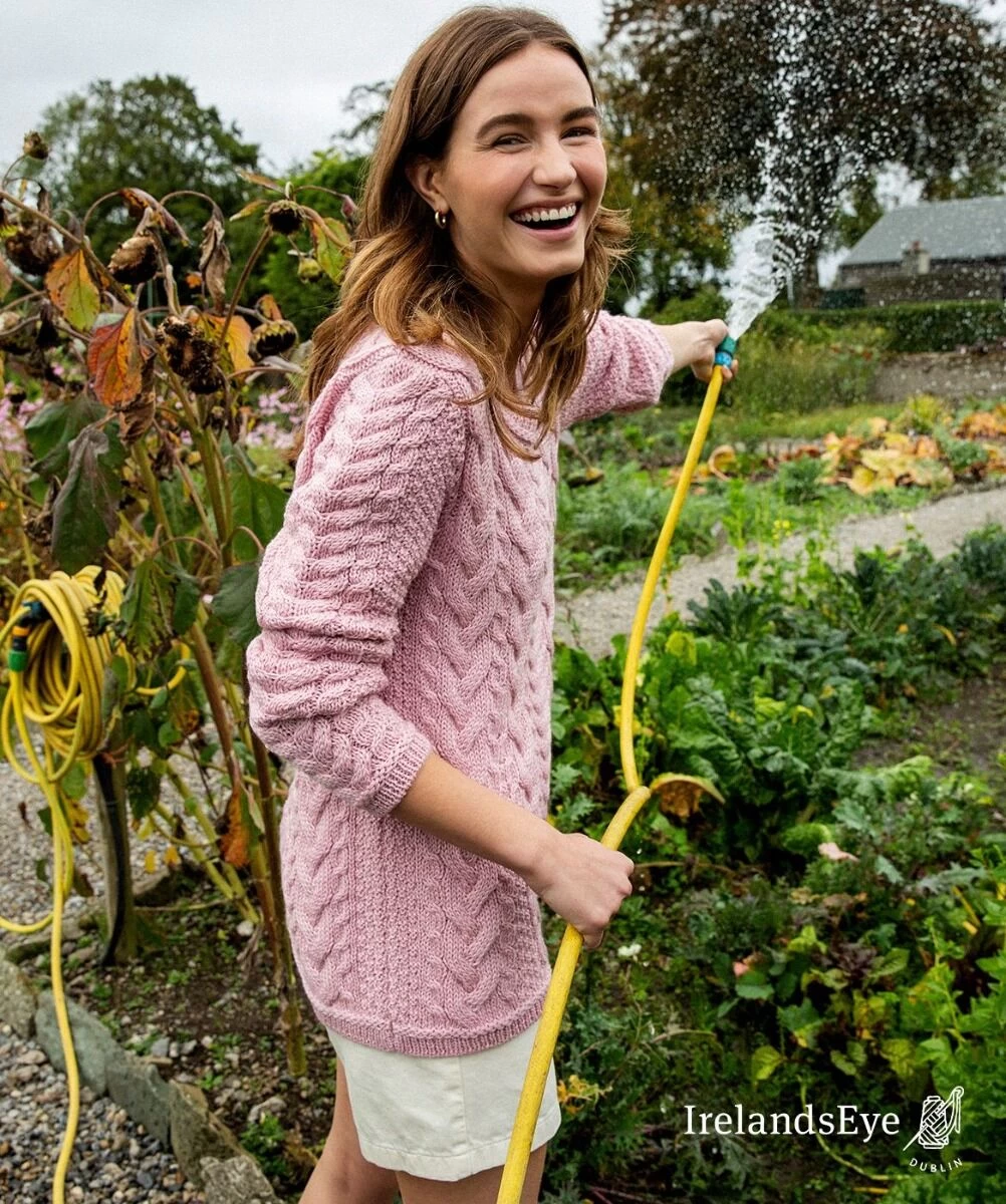 The Primrose A-Line Cable Round Neck Sweater combines traditional Aran cables with a playful, feminine silhouette. It is made of 100% Merino Wool