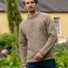 This unisex aran sweater ia made of 100% Pure wool. It is made in Kildare, Ireland. It features stunning Irish Aran Stitches throughout making this a real classic Irish sweater. It is ideal for both men and women and this colour charcoal goes perfectly with your favourite black jeans for a sophticated day time look. The diamond is said to bring wealth. This round neck jumper is available in plus sizes and in extra small. Warmth is the key to this style and made with 100% wool it is sure not to let you down.