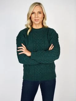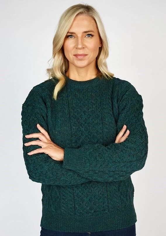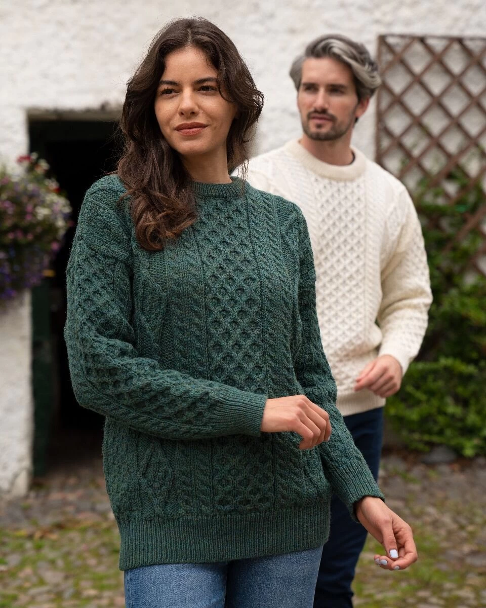 This unisex Aran sweater is made in Ireland from 100% Pure New Wool.