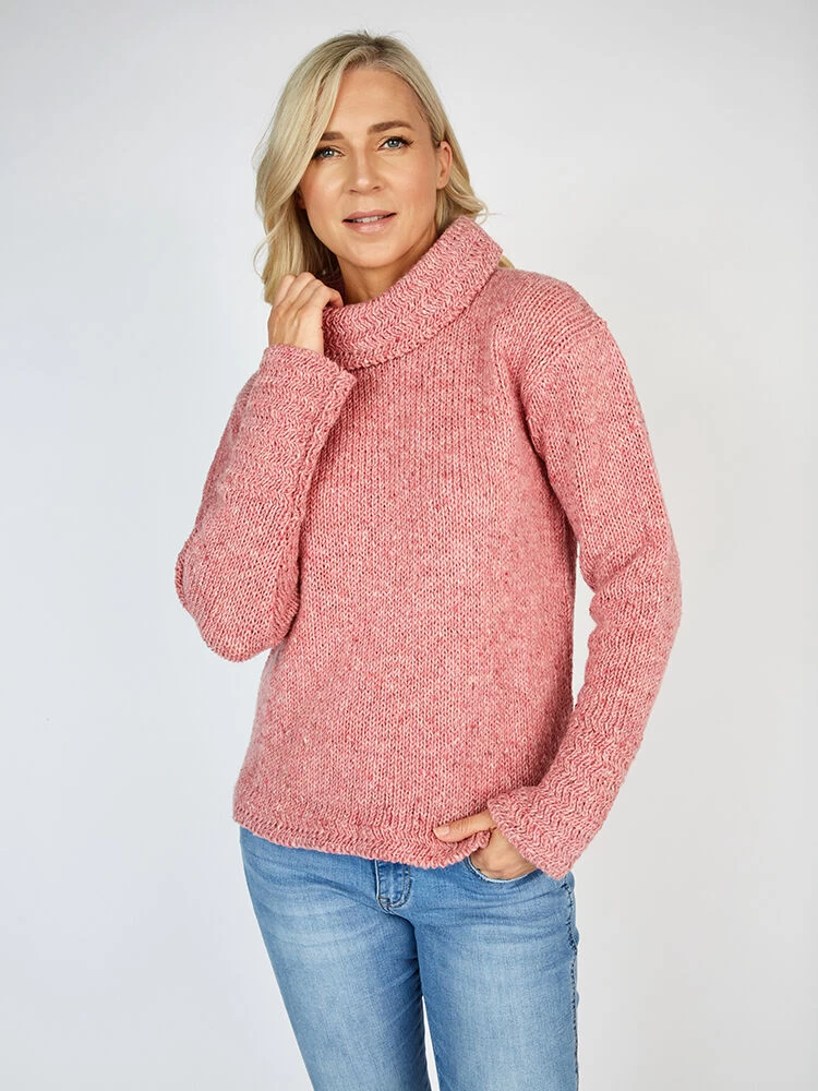 Made in Donegal, Ireland, this cropped sweater is hand loomed with 100% Donegal Wool. It features a herringbone weave, long sleeves and a beautiful shawl neck collar.