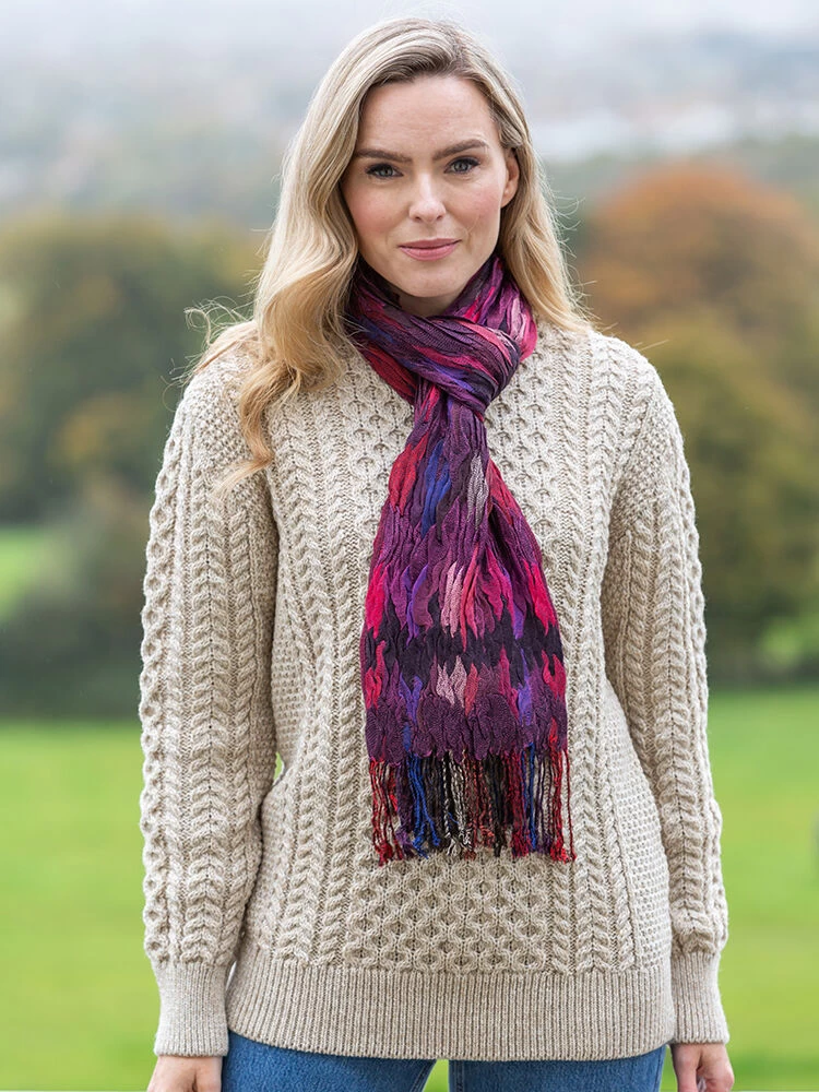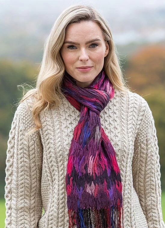 This beautiful Irish scarf is extreemely soft and is a mixture of rich pinks throughout. This scarf is a perfect pop of color to add to any outfit. Made of viscose – this Irish scarf is soft and luxurious and the perfect stocking filler this year!