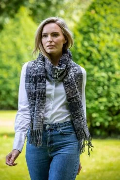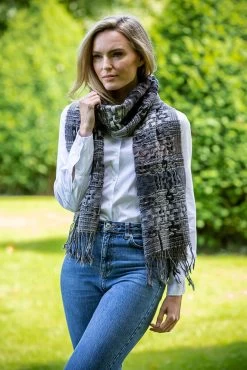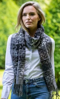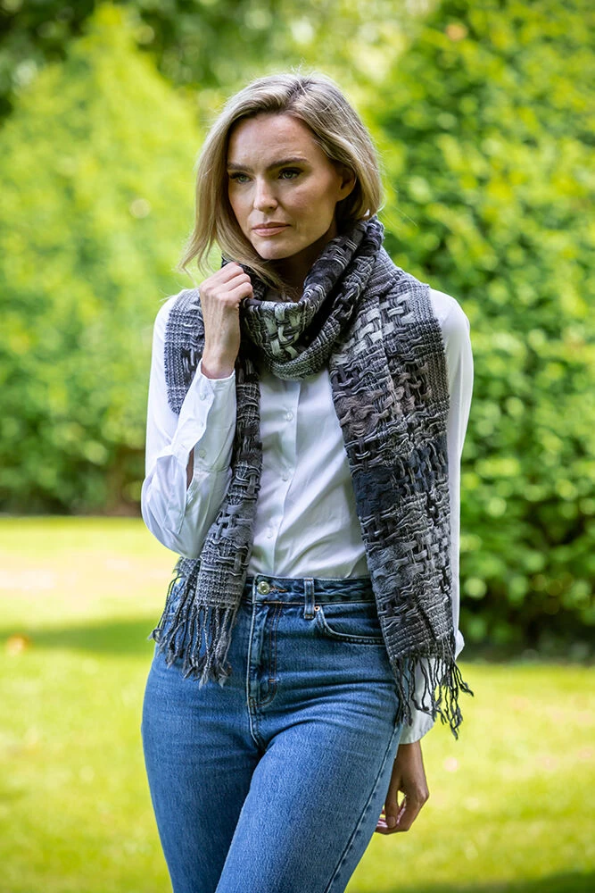 Suantrai Of Ireland Scarf Open Weave Grey Black