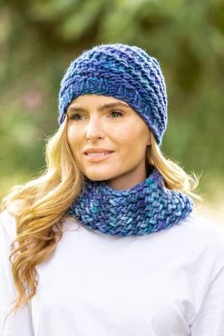 This beautiful hat and snood set is completely handmade by one of our employees with hand dyed yarn. The 100% chunky Merino wool used to knit these unique items are of a super soft variety to ensure superb warmth and softness. The variety of colours that result from the hand dying the yarn are guaranteed to brighten up your winter wardrobe staples and those dreary winter days. By purchasing one of these sets you can be guaranteed that what you get is an absolutely unique handmade product. This set would make a wonderful gift for a loved one for any special occassion.
