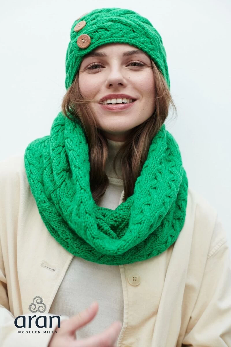 Now available in a stunning new shade of green – our best selling super soft snood is made of 100% super soft merino wool. It is made in Westport, Co. Mayo by Irish company Aran Woollen Mills. It so soft and luxurious you will never want to take it off. One size fits all.