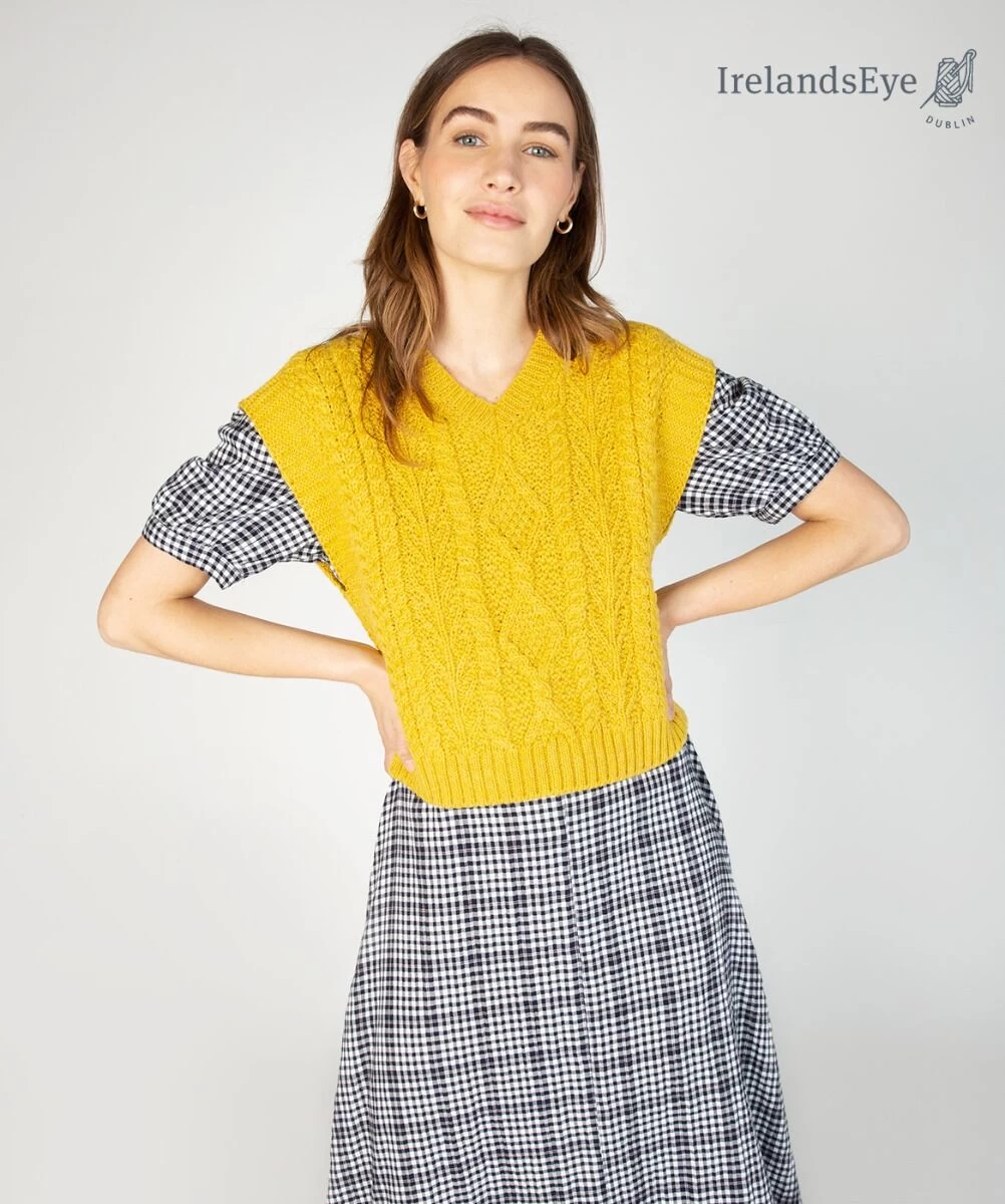 Made in Dublin, Ireland the new sweetpea aran vest features diamond stitching throughout. Available in a selection of new and vibrant colours this vest is made of 100% merino wool.