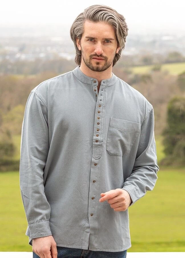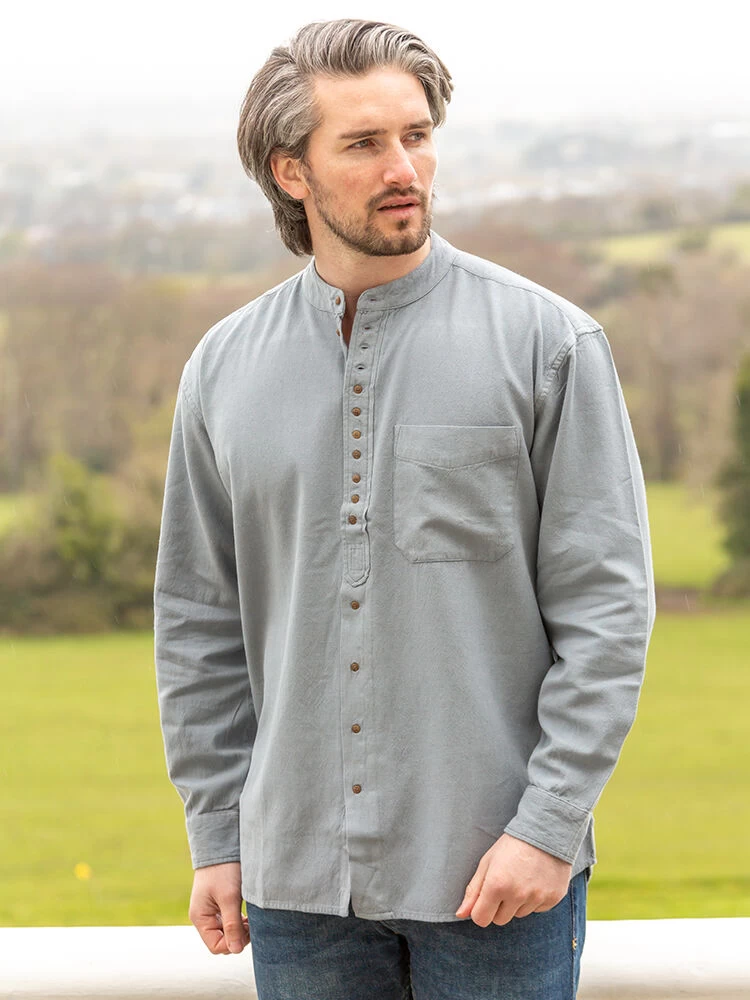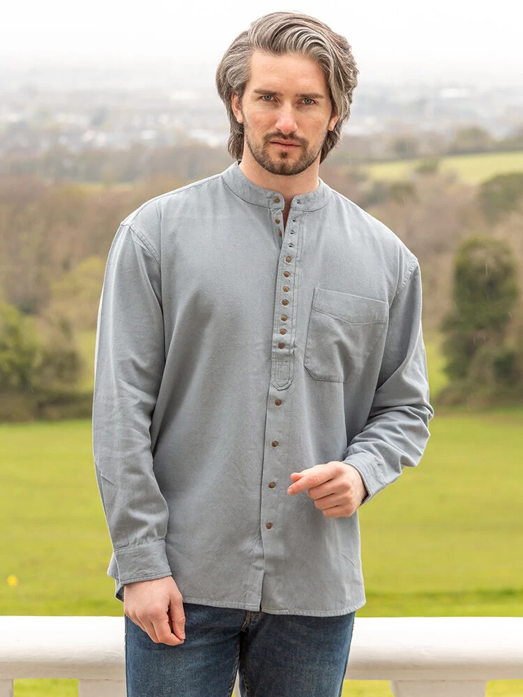 This mans Irish Grandfather shirt is made of 100% cotton. It is the ideal Summer shirt as it is lightweigh, breezy and cool to wear. It is perfect over your favourite jeans or shorts in the warmer weather. It is a relaxed fit so sizes run big. Model wears size large.