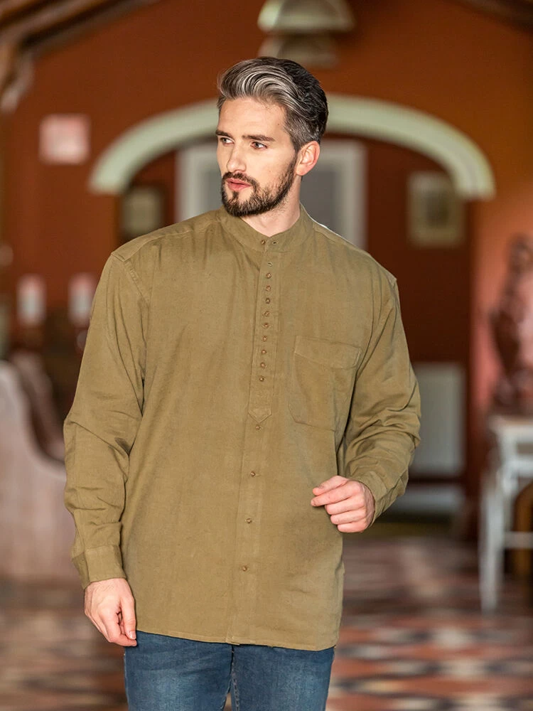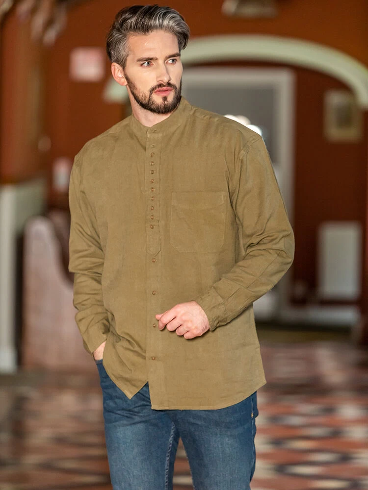 Traditional Irish Grandfather Shirt collarless shirt worn throughout Ireland Made of 90% Cotton and 10% Linen Made in Ireland Relaxed fit Also known as a ‘Sunday shirt’ The perfect addition to any wardrobe this season and ideal gift for a loved one looking for something unique made in Ireland!