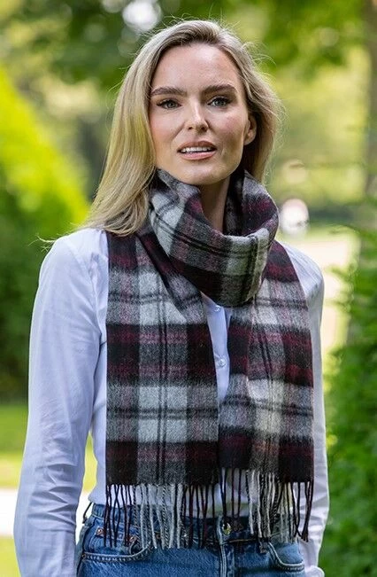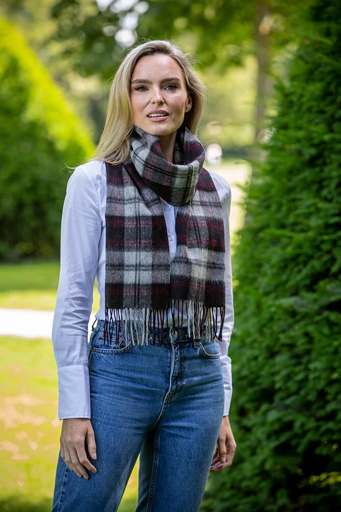 Wool And Cashmere Scarf Grey, Black And Red