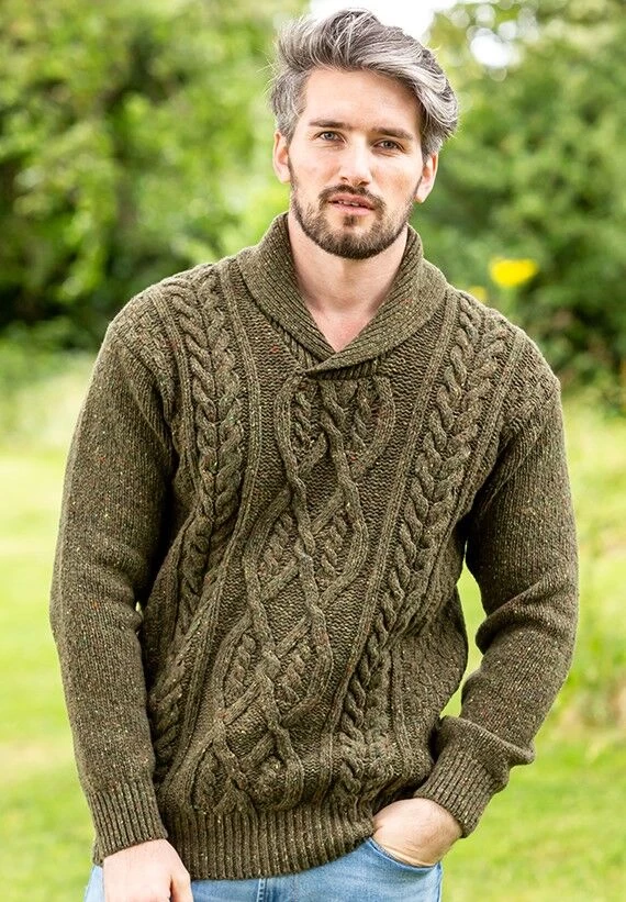 This mens shawl neck sweater is made of soft wool (95%) and cashmere (5%), making it a favourite among our male customers. It is made in Dublin by a fellow family business- Irelands Eye knitwear. It is soft, cosy, warm and extremely fashionable to wear.